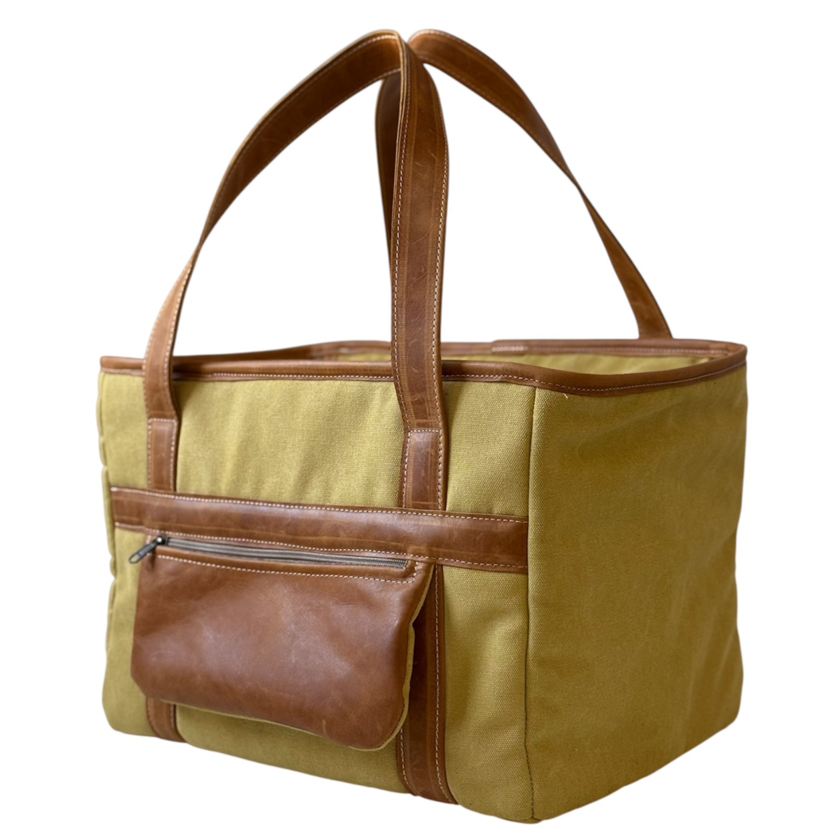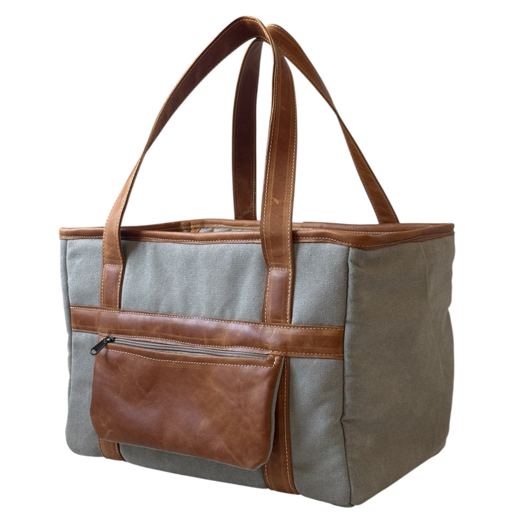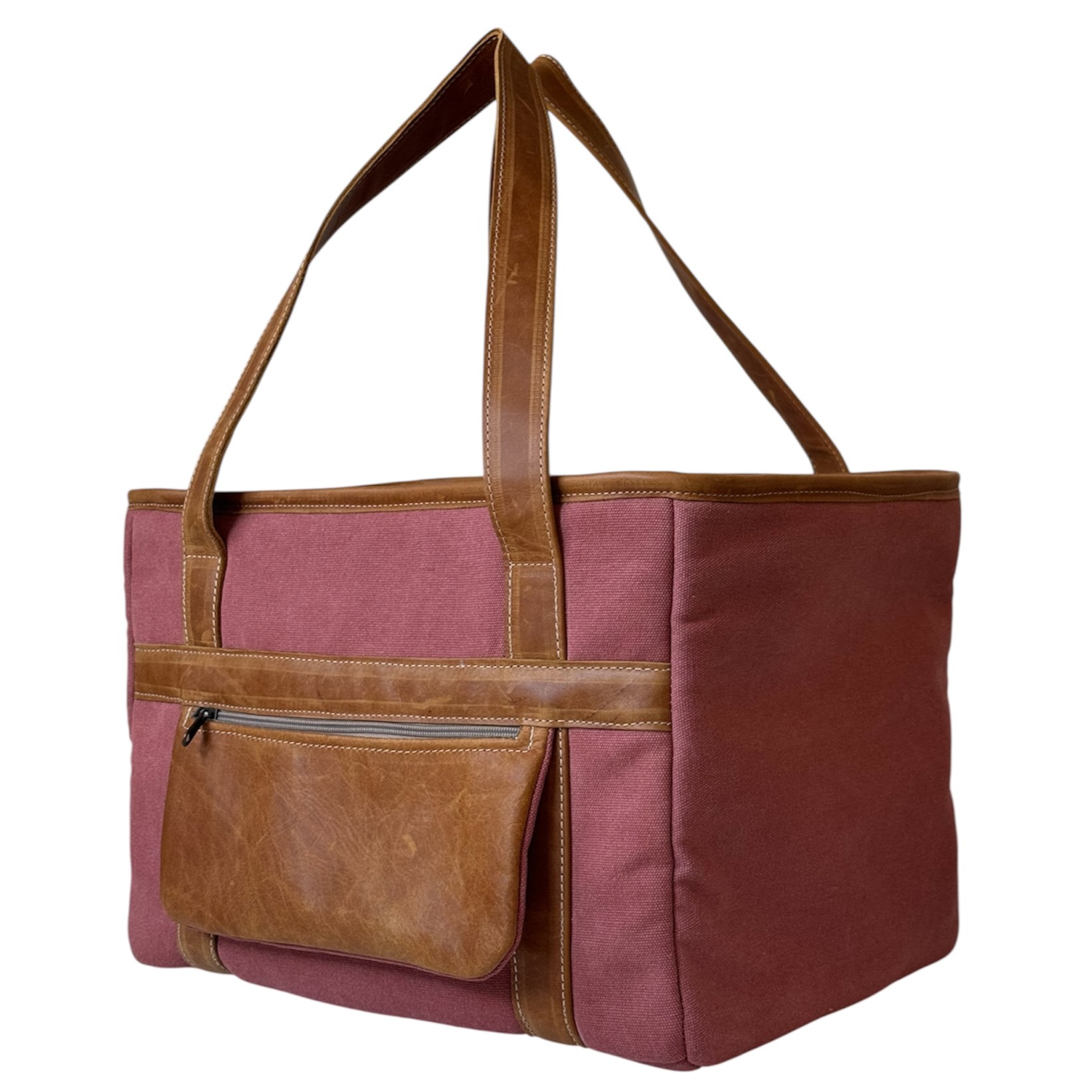 This bag is made of durable canvas, easy to clean on the outside and also lined inside with waterproof fabric. The genuine leather straps have extra support for easy carrying. The leather pocket on the outside is a inserted pencil bag or can be used for your daily essentials such as cellphone, keys ect.