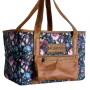 This bag is made of waterproof, easy to clean fabric on the outside and also lined inside with waterproof fabric. The leather straps have extra support for easy carrying. The leather pocket on the outside is a inserted pencil bag or can be used for your daily essentials such as cellphone, keys ect.